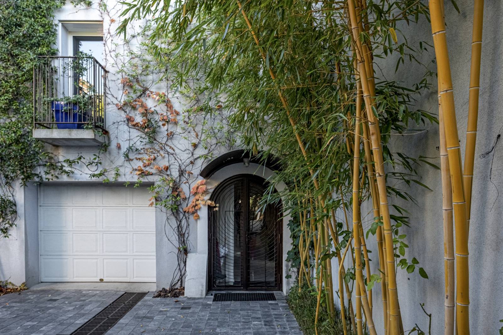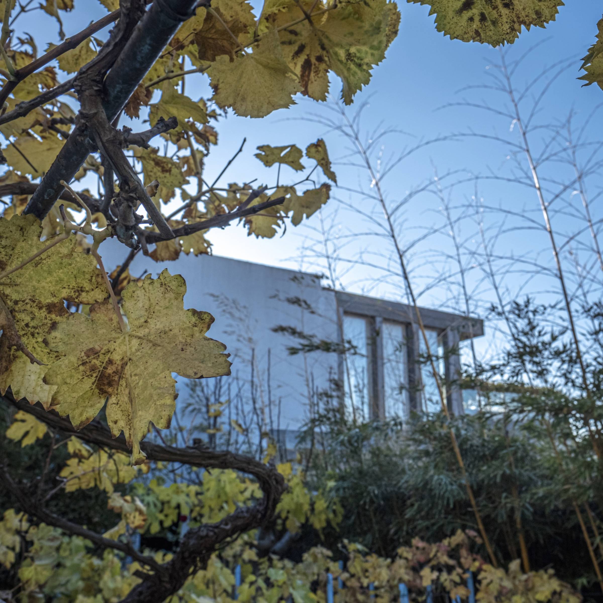 L’aspect extérieur de la maison est constitué d’un enduit hydraulique bleu clair afin de donner à la façade une dimension immatérielle et l’associer au ciel. Des éléments de forte de matérialité sont aussi parties prenantes des façades tels que les appareillages de Grés et de Schistes ou bien les brises soleils en bois afin de maintenir une forte appartenance au milieu.