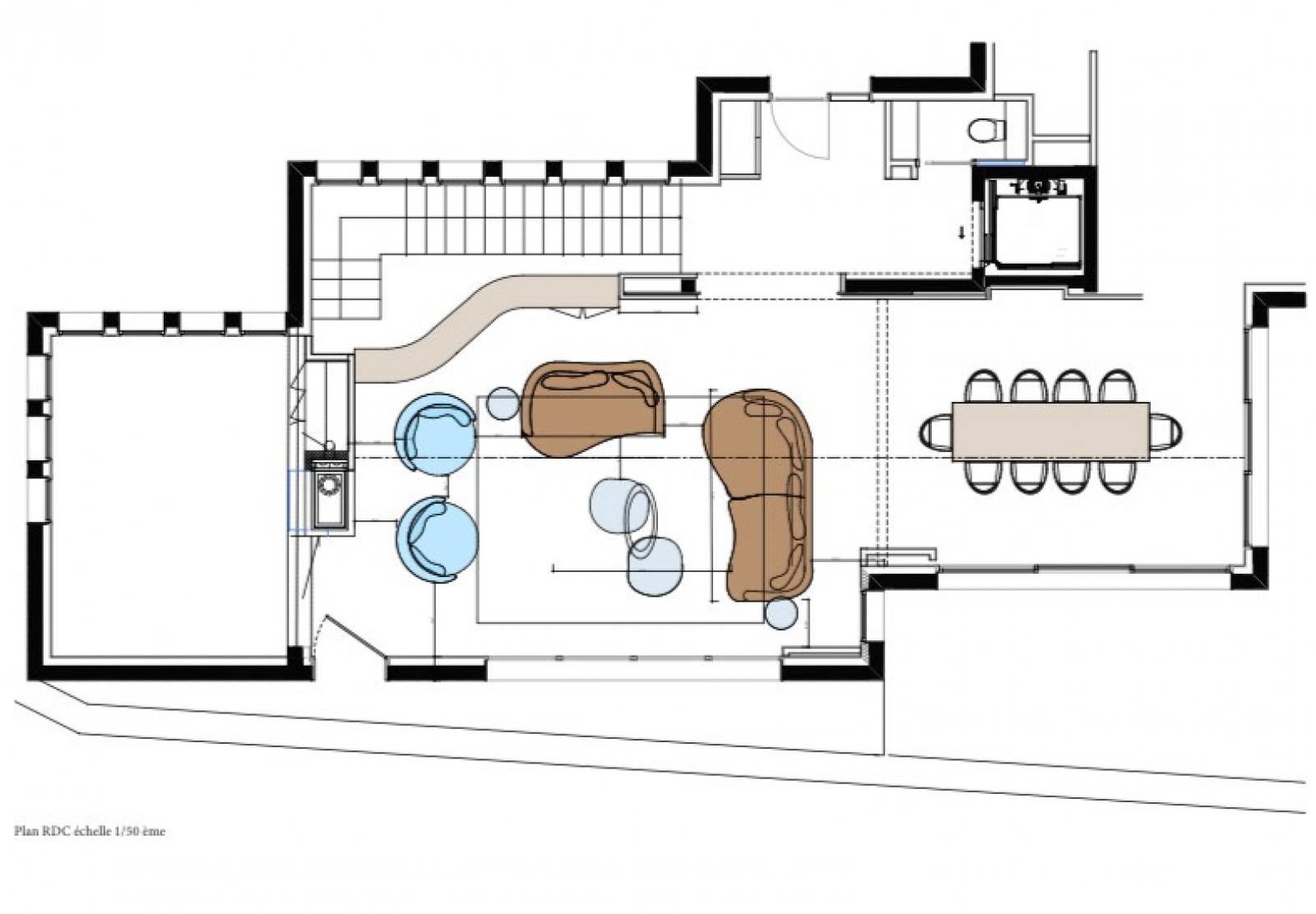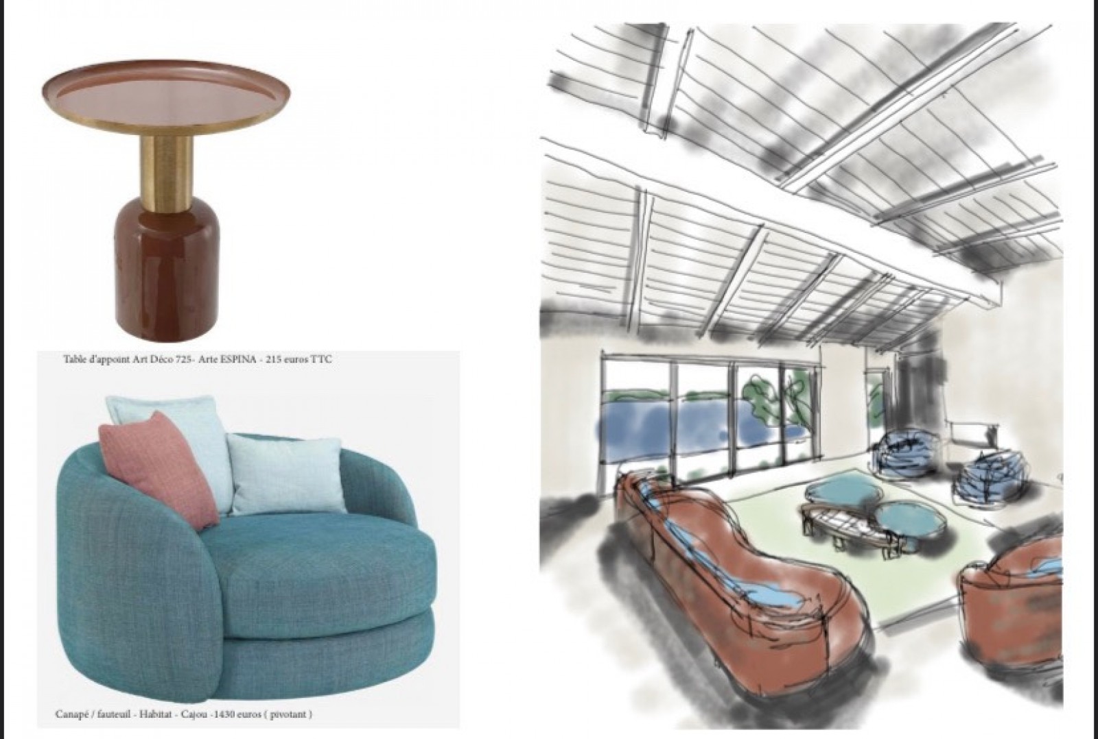 Nous avons dessiné et choisi le mobilier de chaque pièces. Un travail sur-mesure afin de xrézr une atmosphère qui fait échos au site.