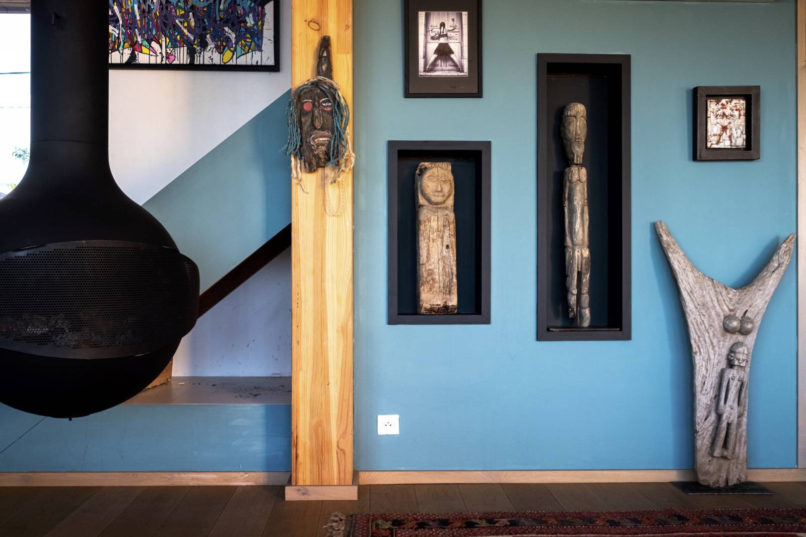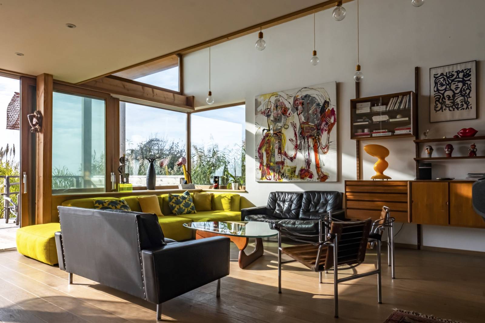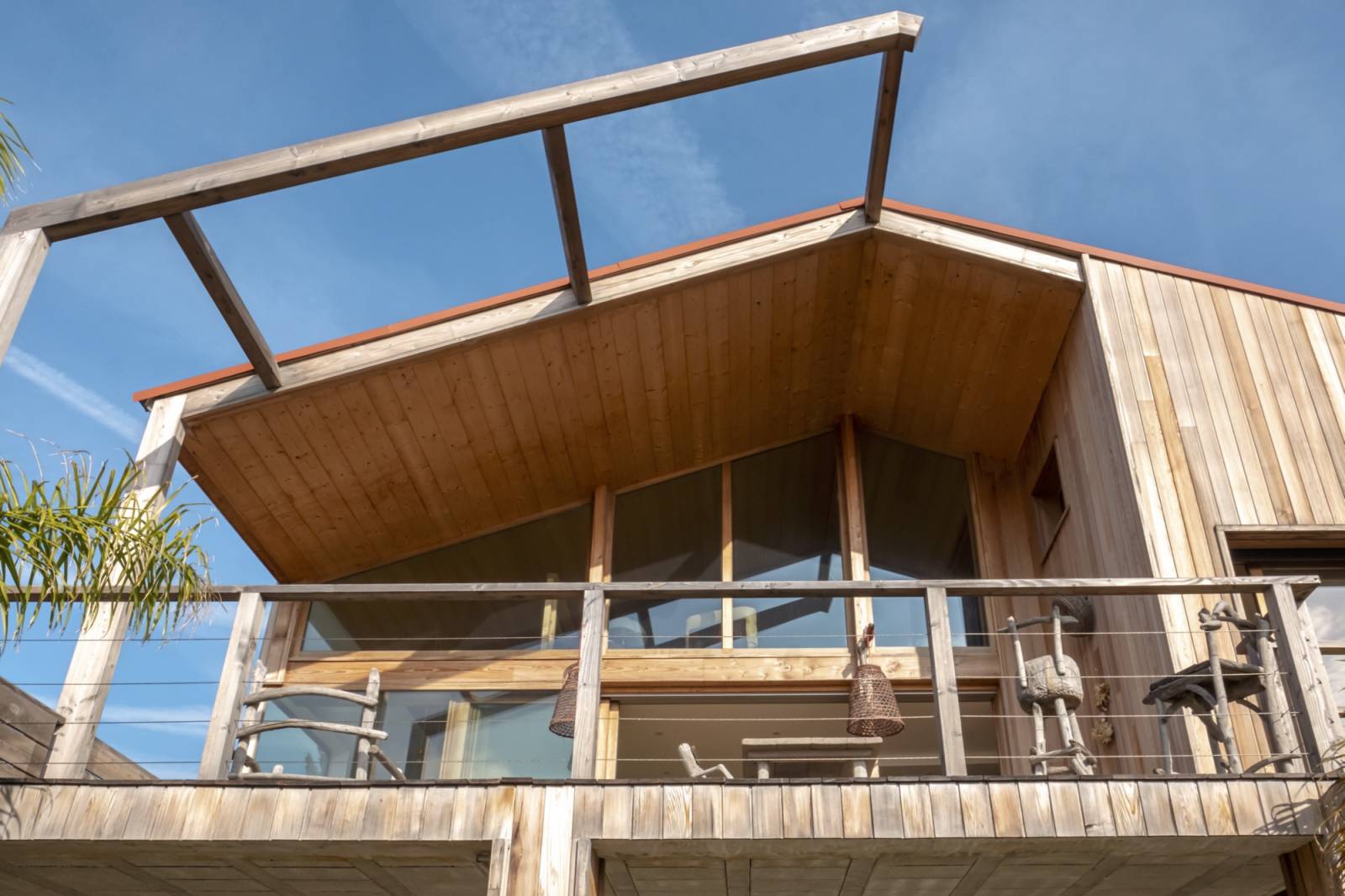 La double hauteur qui assure une belle transparence entre l’extérieur et l’intérieur maximise les points de vue en tous points de la maison.