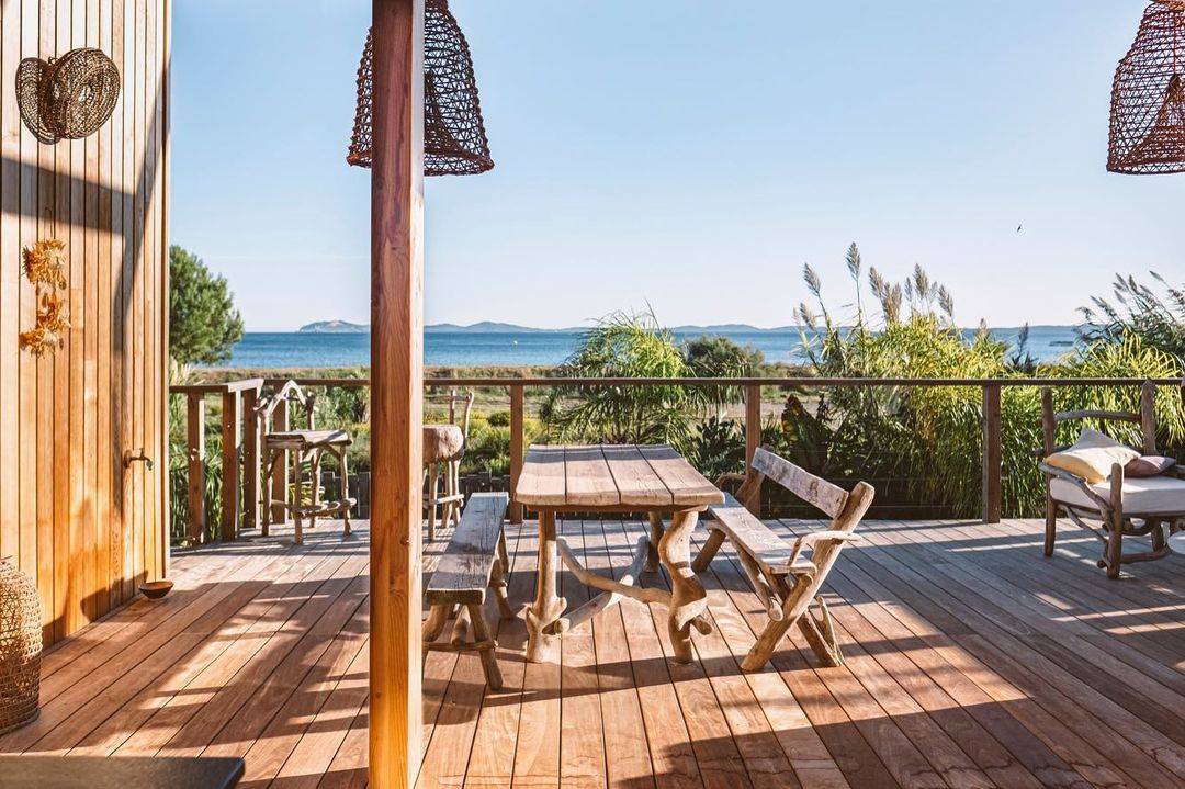 Création et réalisation complète d’une maison neuve en bois à Hyères.C’est une belle cabane de luxe en face de Porquer...