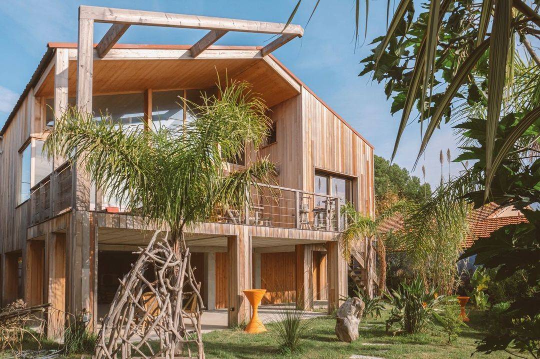 La Casa Gigi maison contemporaine sur pilotis en bois rouge à Hyères