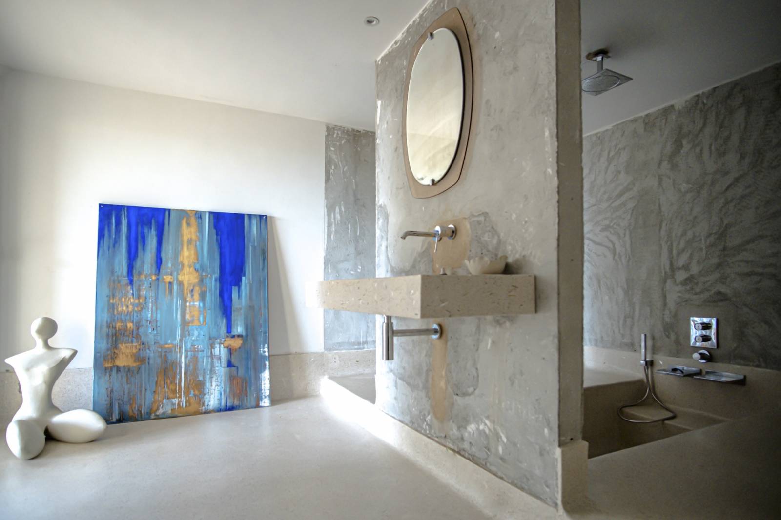 Ainsi les sols sont en bois vieillis, béton cirés, les façades béton. Le mobilier et la décoration sont composés d’objets de récupération, transformés et détournés dans un climat artistique et créatif fort.